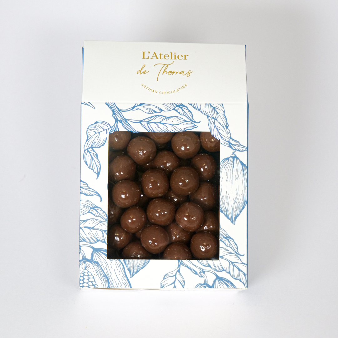 Un coeur de céréales croustillantes sublimé par le chocolat Caramélia, un chocolat au lait au notes caramelisées et au accents subtilement salés et biscuités.